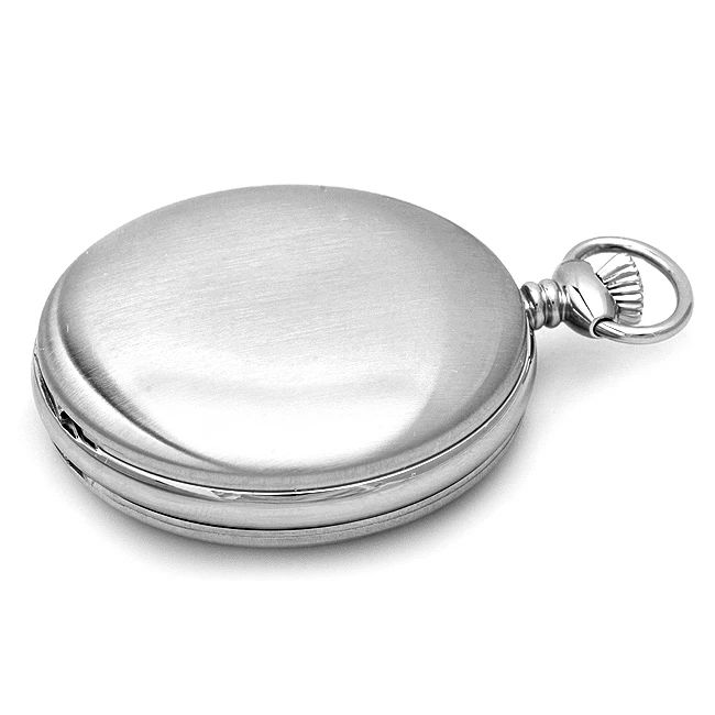 - Stainless steel dual-opening pocket watch with 12″ chain