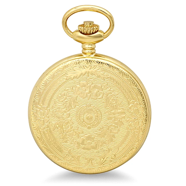- Polished gold-plated mechanical pocket watch & matching 12″ chain