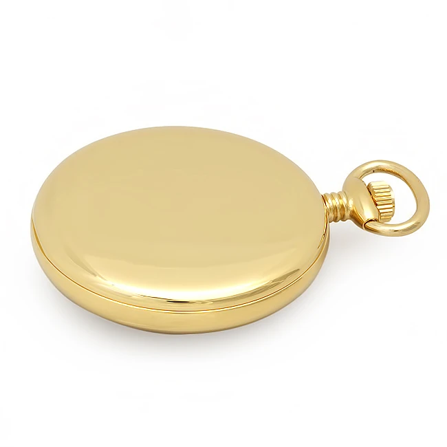 - Polished gold-plated open face quartz pocket watch & matching 12″ chain