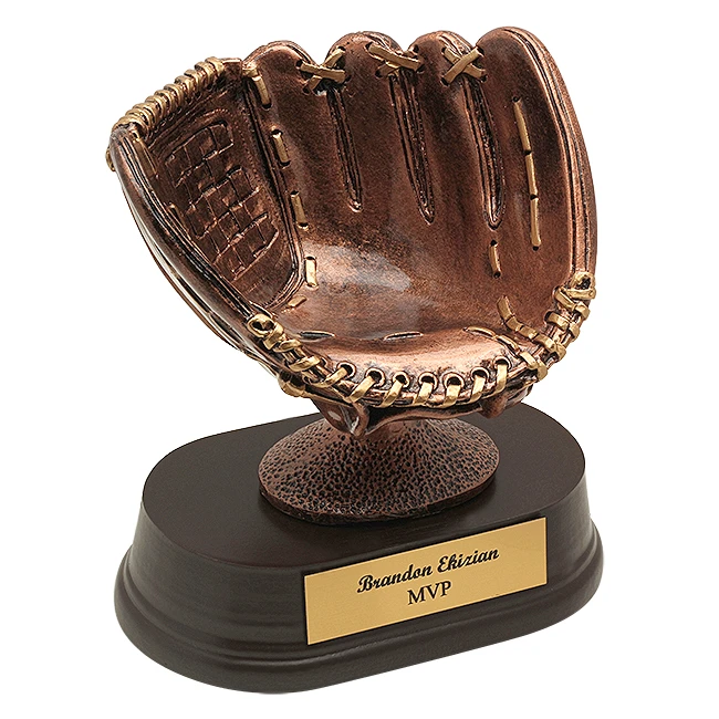 Do you know someone who’s a collector of baseball memorabilia? Or maybe that someone is you! Does your corporation take part in a baseball league, or sponsor a Jr. Baseball team? Our solid resin baseball mitt mounted on a stand is a great gift idea for the collector among your family and friends! The prized signed baseball will have the best display on the bookshelf or desk, resting securely inside the glove. Or, if you have a company league, the winning game baseball will look amazing in your trophy case! The mitt has a realistic appearance, and is mounted on a base for free laser-engraved information about your treasure! This is a perfect gift idea for birthday, holiday or Father’s Day for your favorite baseball memorabilia collector! We will ship the mitt sculpture to you in an attractive gift box that’s perfect for presentation or storage, along with our full Satisfaction and Performance Guarantee!