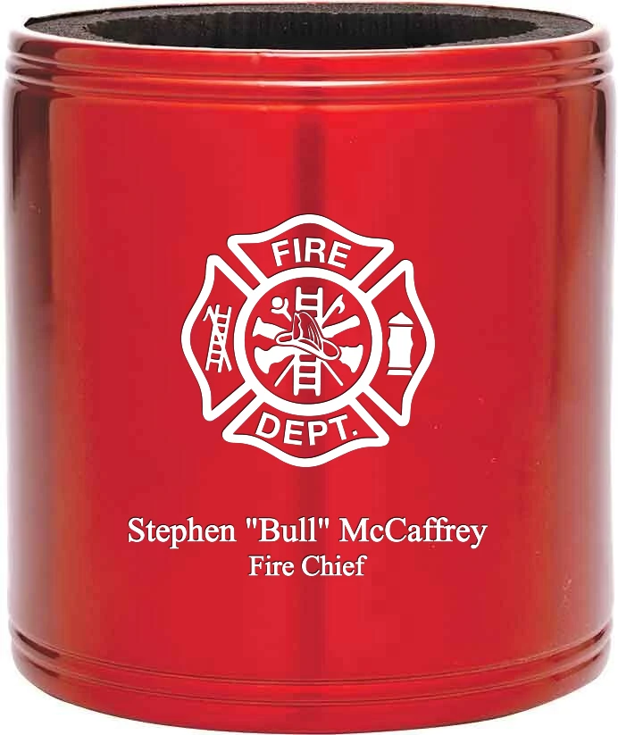 When its time to relax between calls at the fire department, your favorite firefighter will appreciate this gift! This stainless steel can holder has a polished cherry red finish, and is insulated with a foam lined interior and bottom.The front of the can holder features the Firefighters emblem, and 3 lines of personalization can be added below the emblem for free, so that you can let them know how much they mean to you! The insulated can holder comes packaged in a gift box, ready to present for any special occasion.