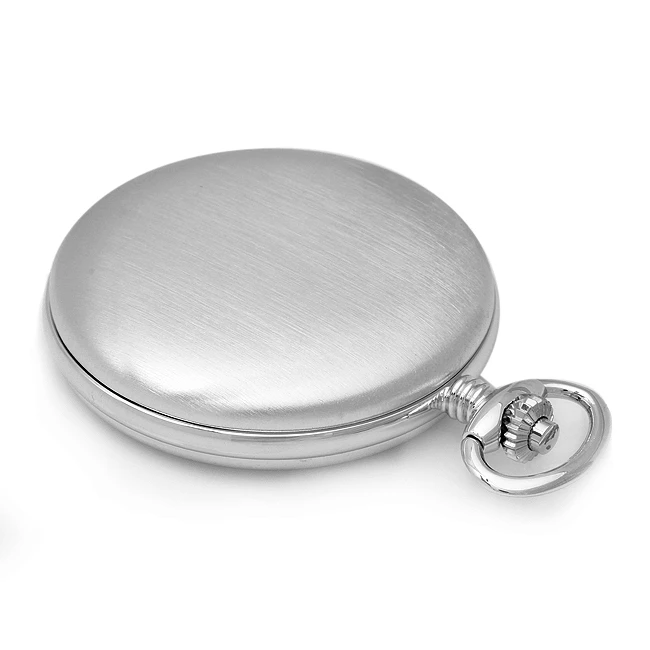 - Rhodium-plated quartz stainless steel pocket watch & 12″ chain