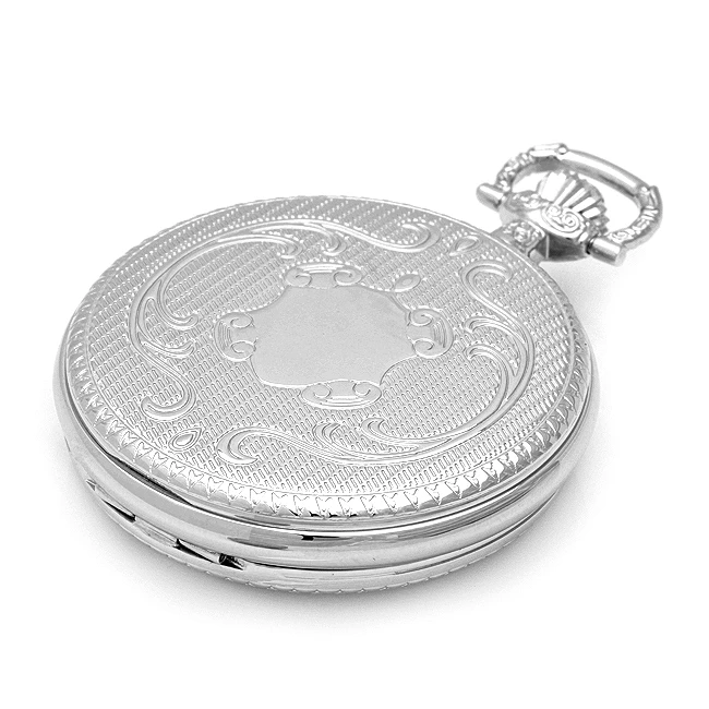 - Polished silver-plated quartz pocket watch & matching 12″ chain