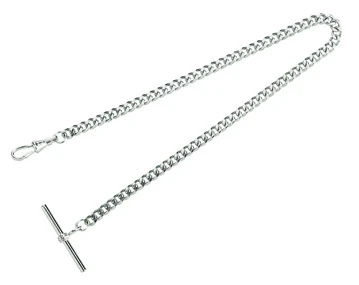 Do you want to include an old or heirloom pocket watch in your professional men’s accessories? Add a gleaming stainless steel chain, so you can clip in to your vest or belt. This chain measures 12″ long, with a clip at one end, and a T-bar at the other. Give the chain as a gift, along with that heirloom watch or a new one from our large selection- it comes packaged in a gift box, ready to surprise someone special!
