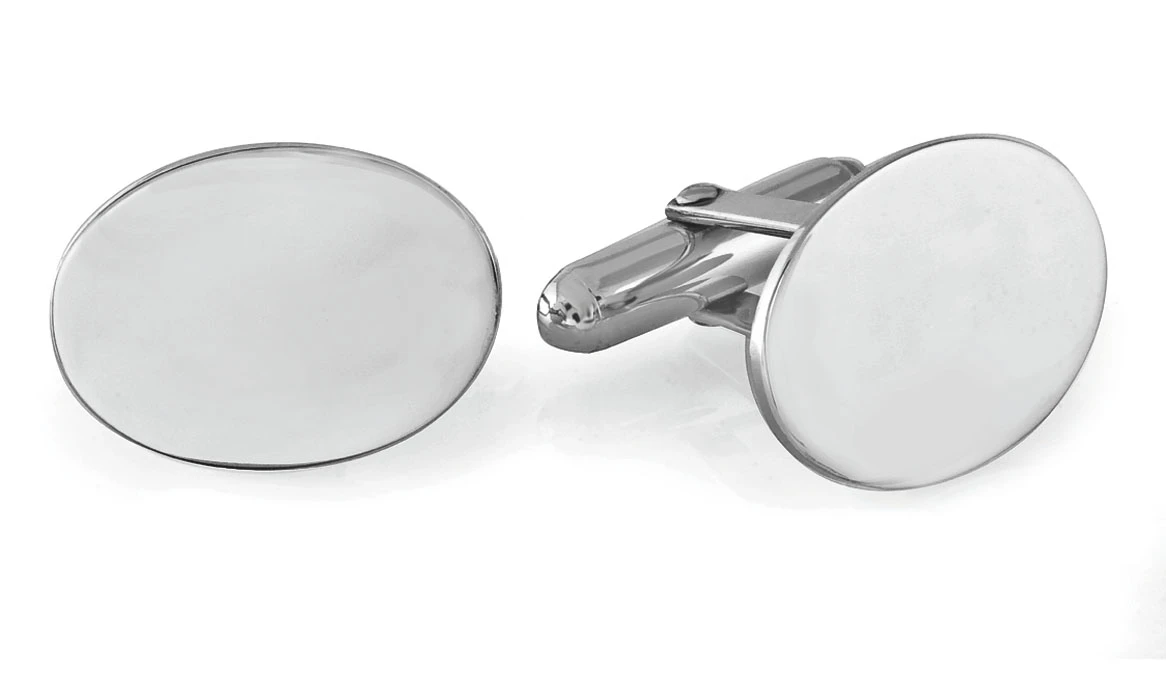 A simply elegant choice for any man’s formal attire, these polished sterling silver oval cufflinks have a large, broad face that is perfect to add engraving to. Just check the Personalize It box above to enter your engraving instructions and we’ll personalize them for you free of charge. They come two to a set, each link featuring a bar back closure that will keep your cuffs right where they should be. Packaged in a gift box, these engraved silver cufflinks for men ship out the day after your order is placed.